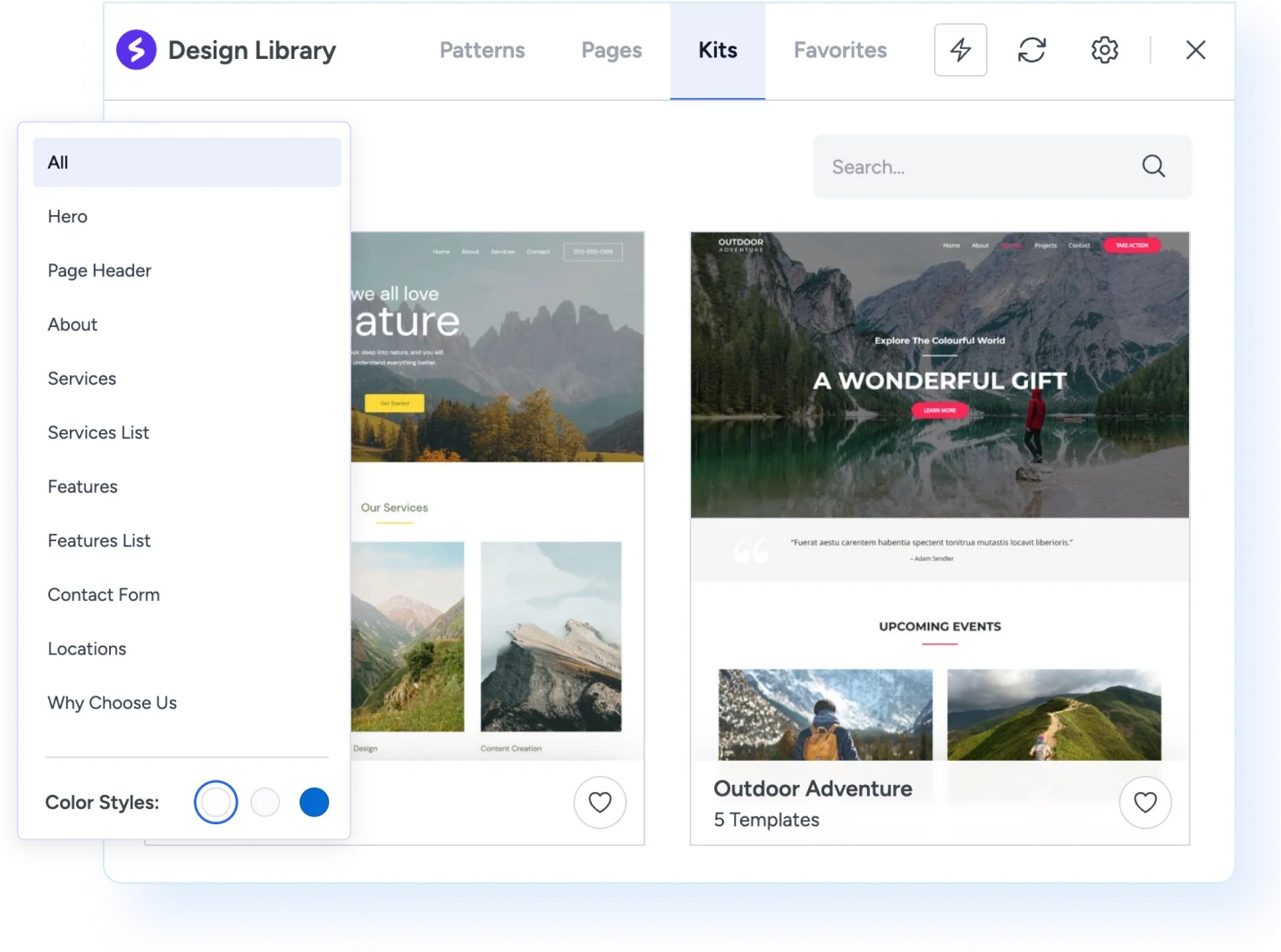 Select from a vast collection of high-quality, readymade patterns, pages, and kits, meticulously crafted to perfectly match your business needs and branding goals.