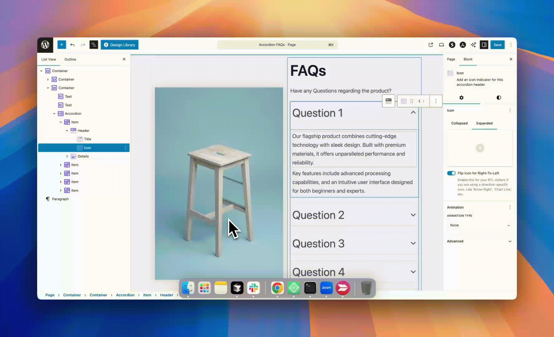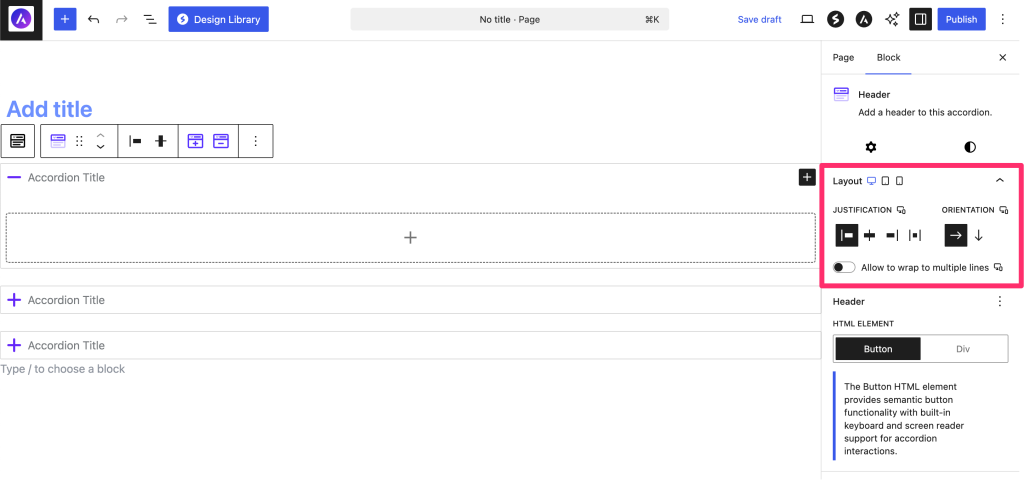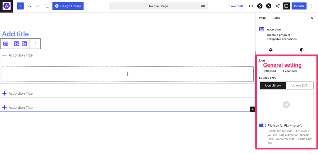 - Select the Accordion Block