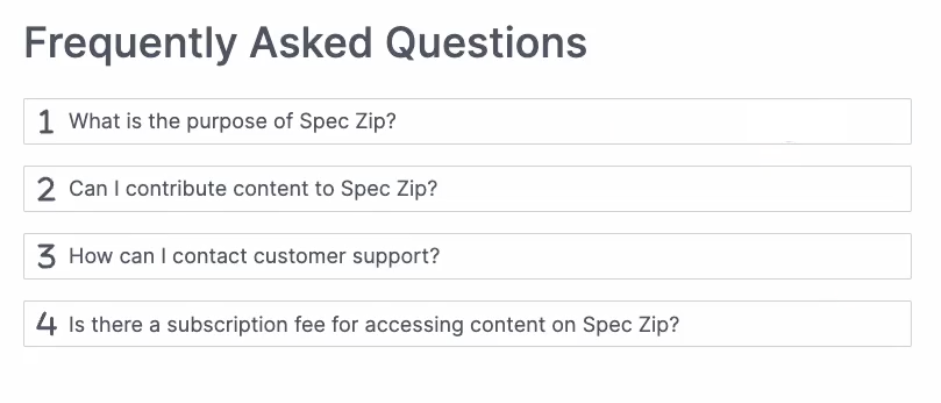 - FAQ Sections: Questions as headers, answers as content