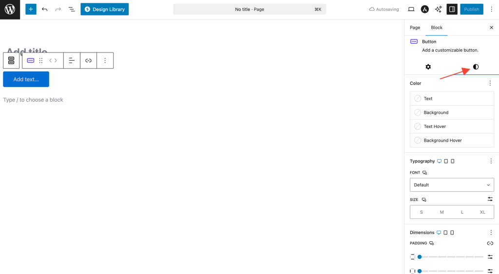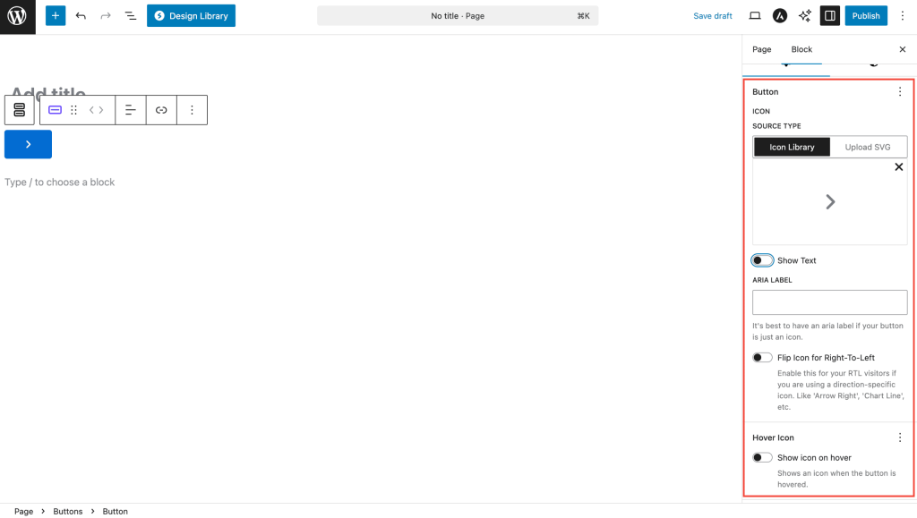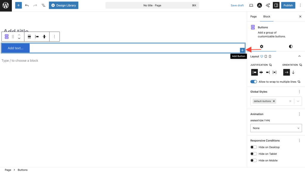 - Once the Buttons Block is inserted, click the “+” icon inside to add a button