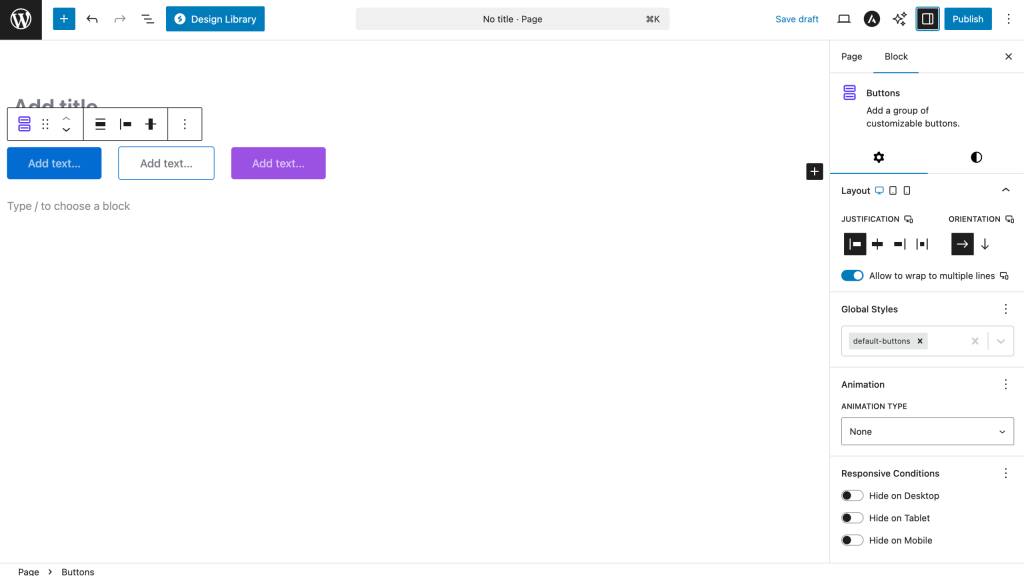 The Buttons Block allows you to create eye-catching, customizable button groups in your WordPress content.
