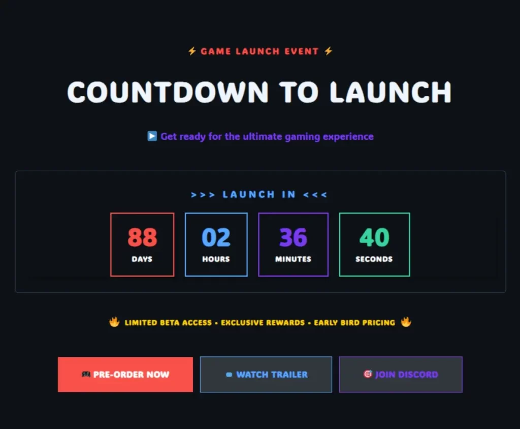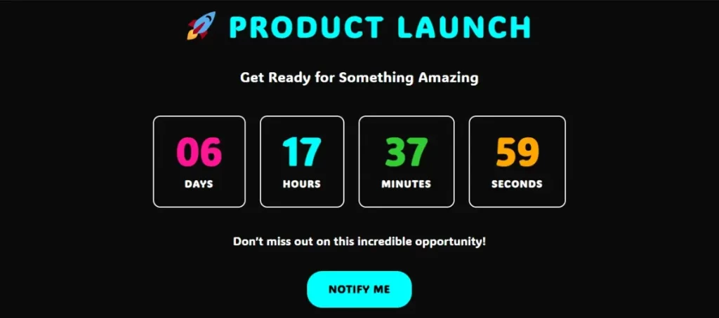 Product launch countdown with branded styling