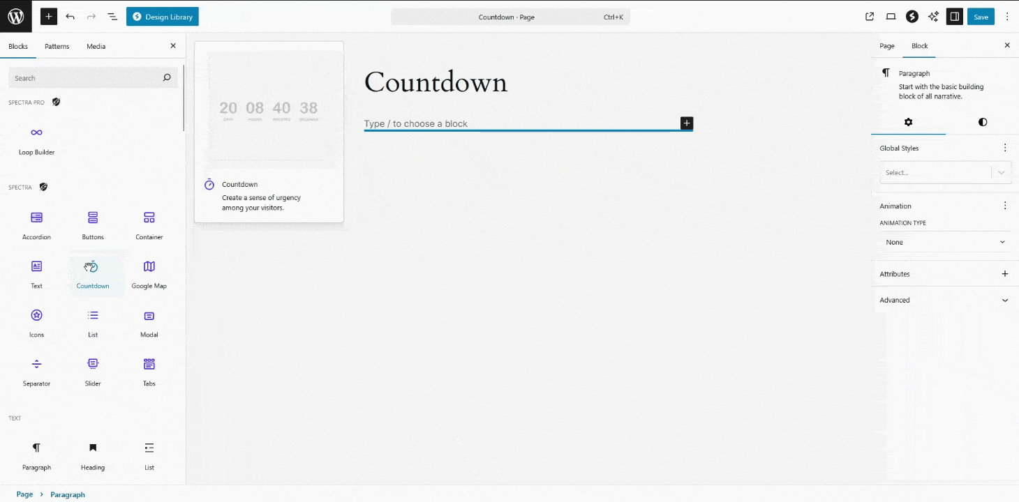 - Style Countdown: Use color, typography, and layout controls