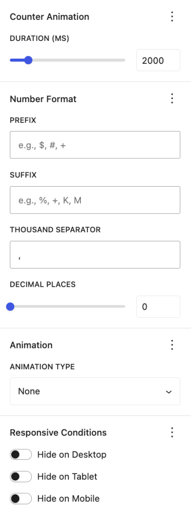 - Suffixย – Add units after the number (e.g., “%” for percentages, “K” for thousands)