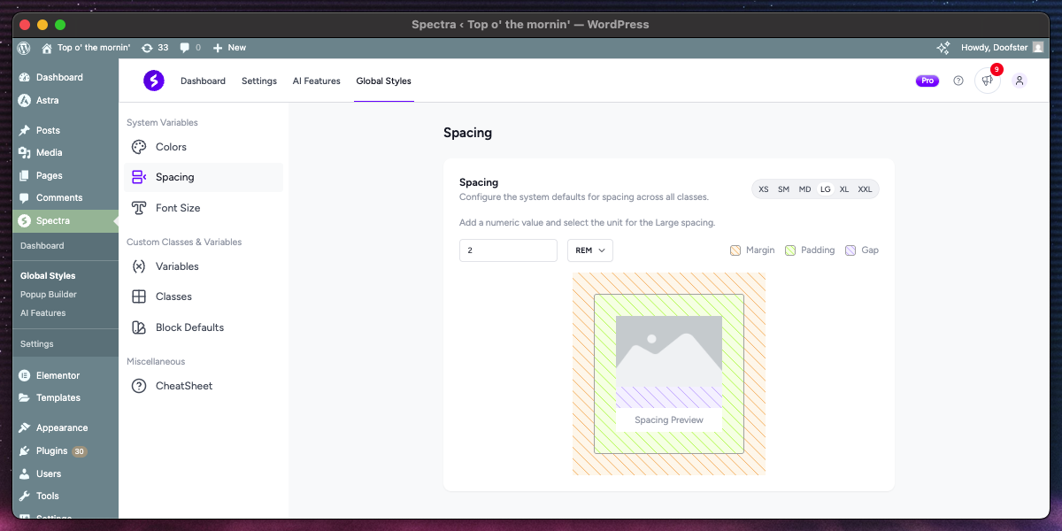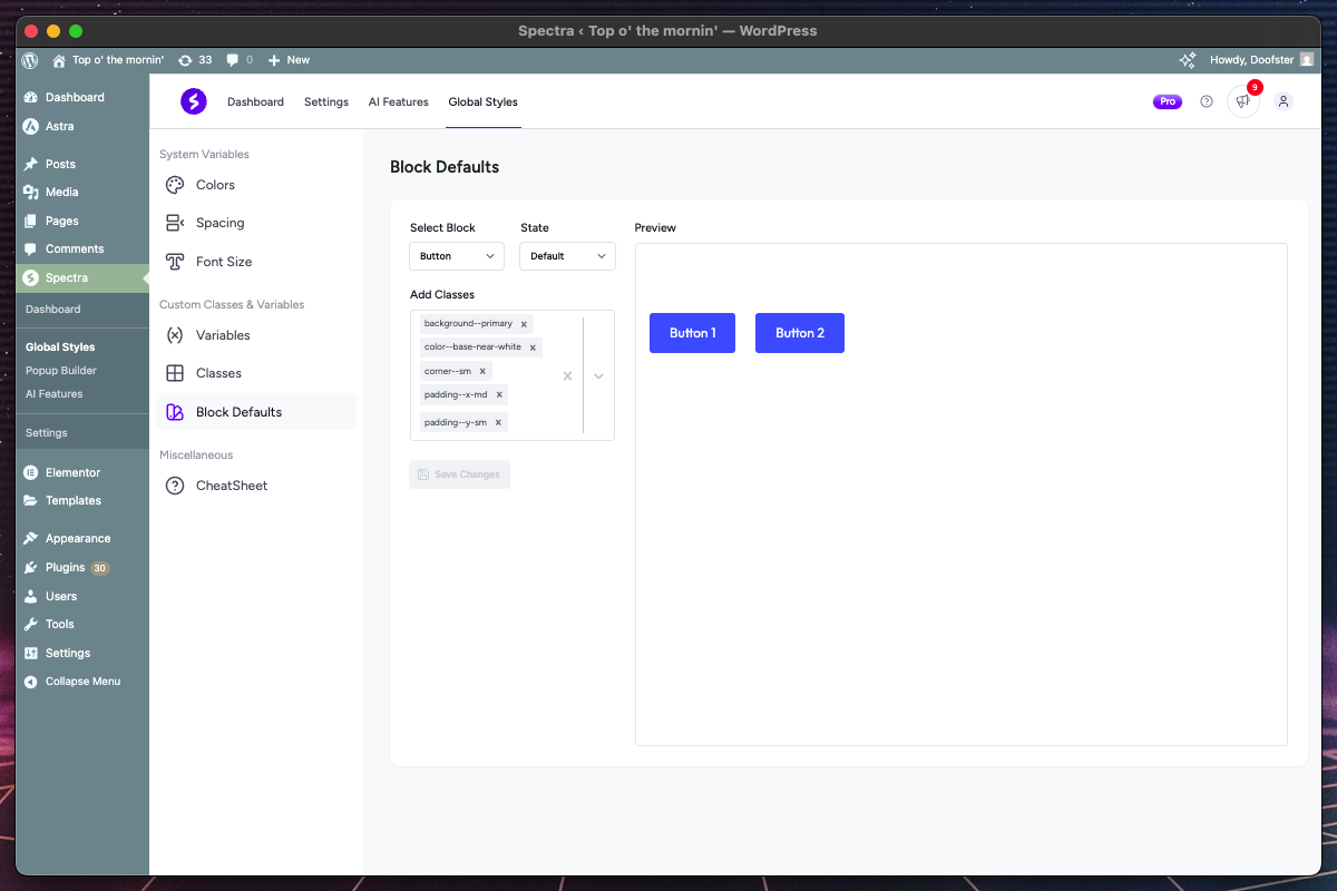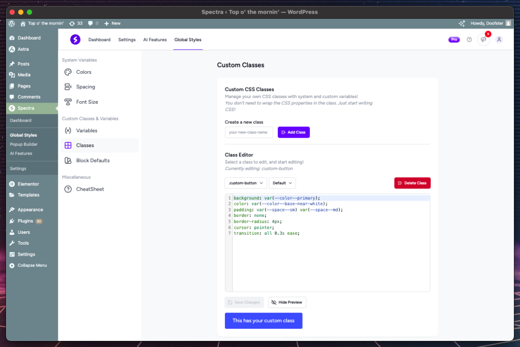 The Global Styles Extension transforms the Gutenberg block editor by adding a powerful styling panel to every Spectra block. This extension provides instant access to pre-built CSS classes, system variables, and custom styling options without leaving the editor. It bridges the gap between the Global Styles Admin Dashboard and actual block styling, making professional design accessible to all users.