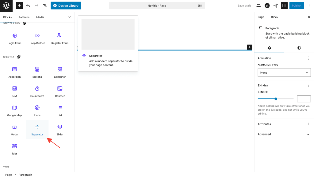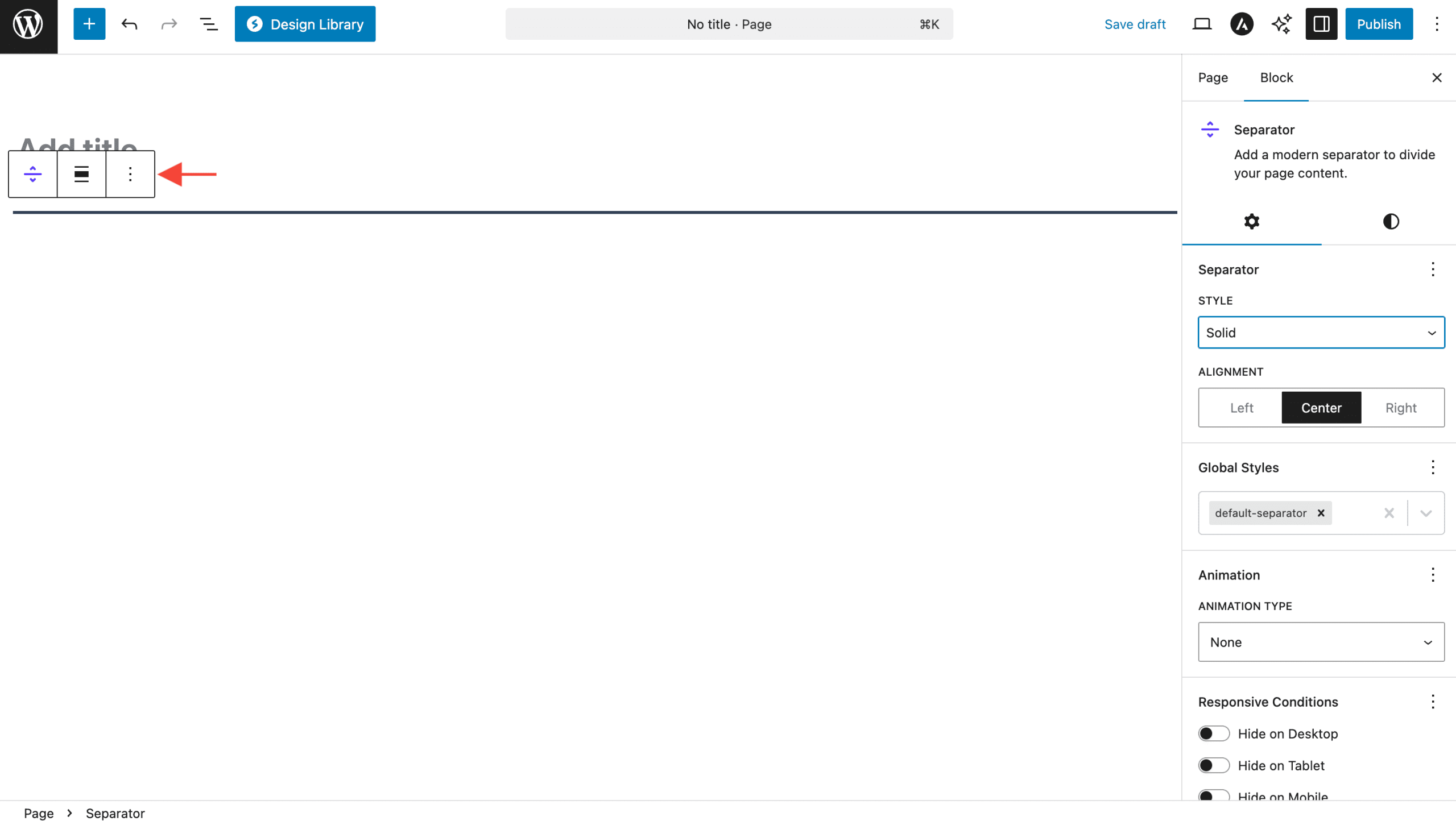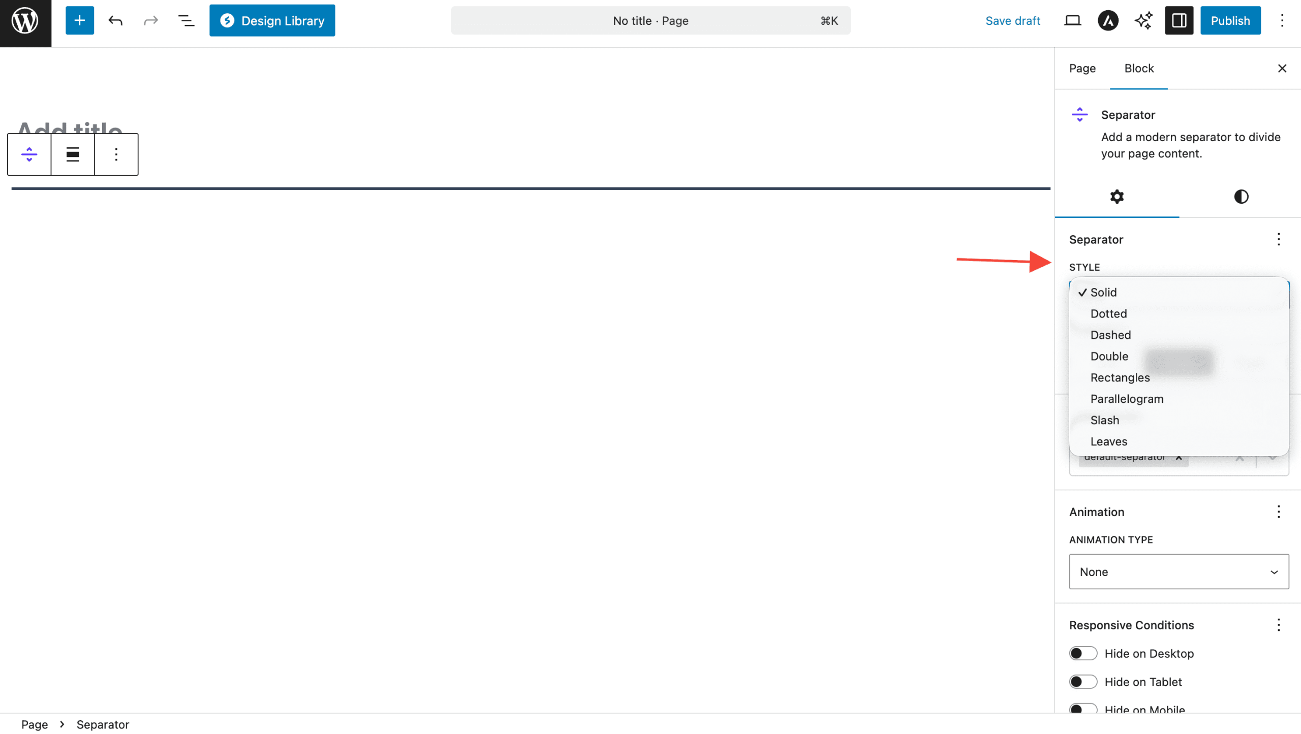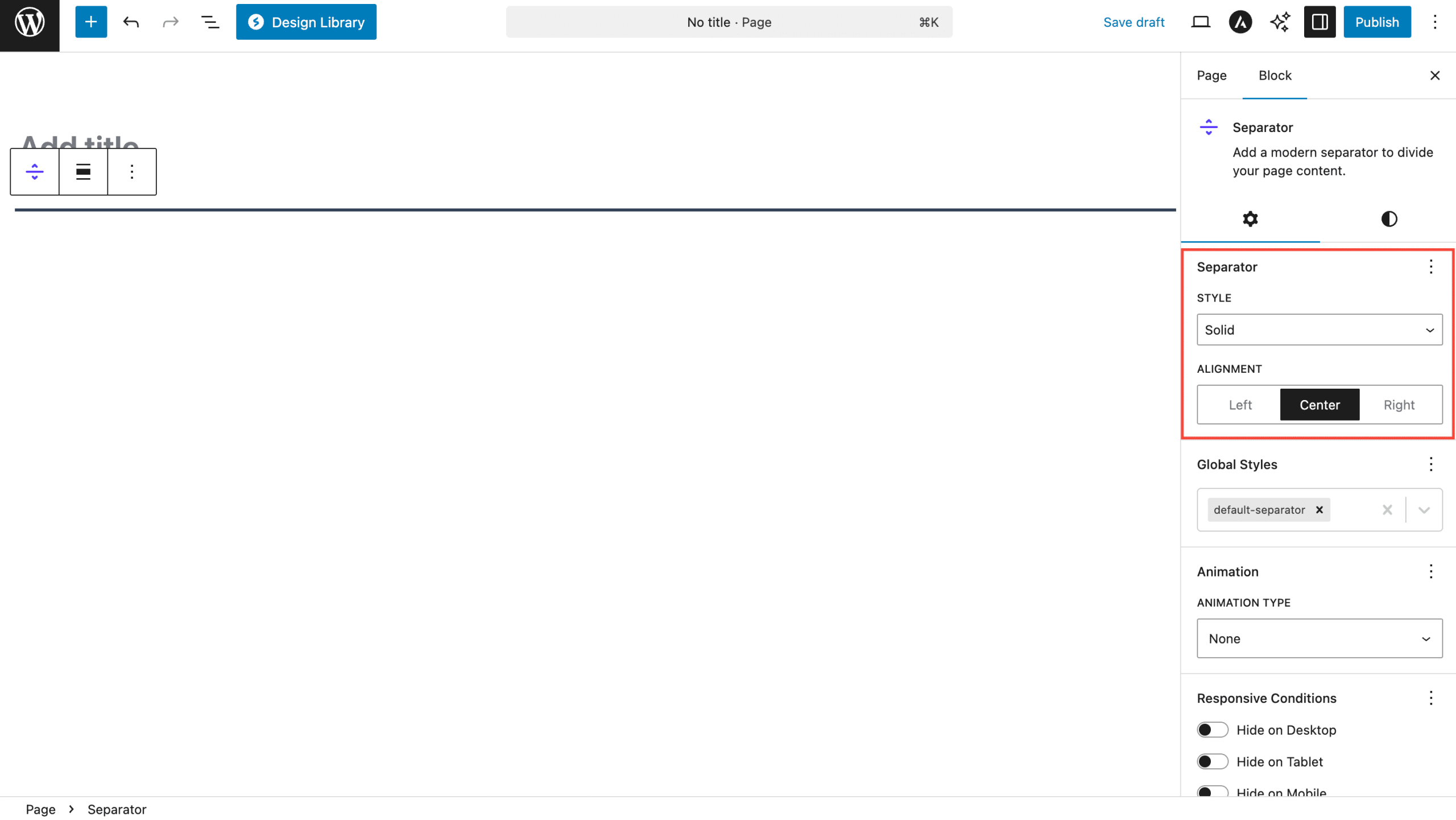 The Separator Block is a versatile content divider that helps organize and structure your page content. It provides clean visual separation between sections with customizable styles, colors, and alignments. Whether you need simple lines or decorative patterns, this block offers both classic border styles and modern SVG patterns for enhanced visual appeal.