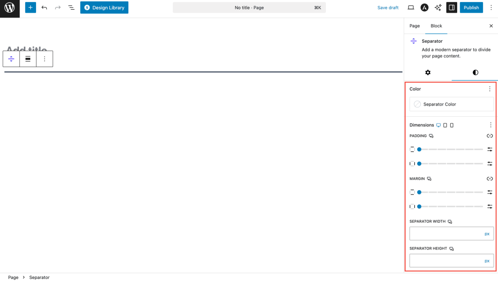 | Width | Separator width | px, %, vw, em, rem (Default: 100%) |